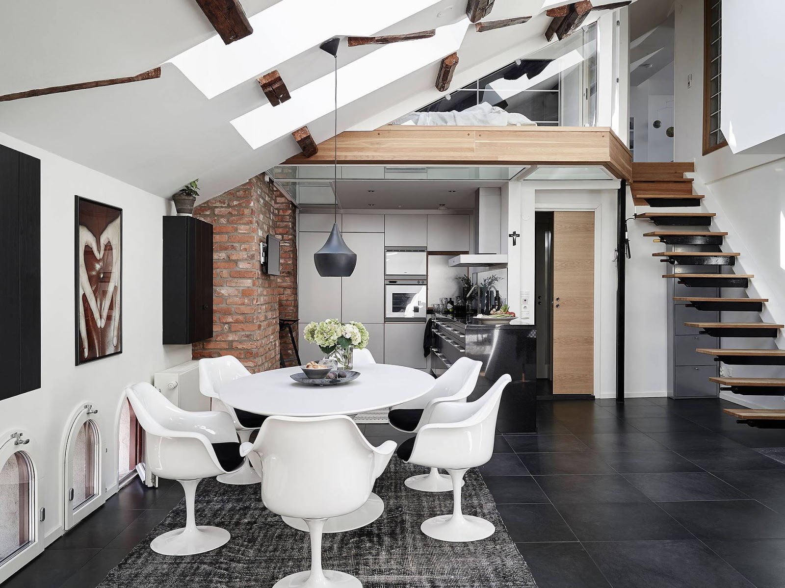 Co raz częściej marzy mi się przytulne mieszkanie na poddaszu z dużymi oknami, wysokimi skosami i starymi belkami. Przypadek chciał, że właśnie trafiłam na realizację wnętrz apartamentu na poddaszu o powierzchni 133m2 zlokalizowanej w Sztokholmie, który mnie zachwycił. Chętnie się z Państwem podzielę swoim odkryciem, może będzie to inspiracją do własnej aranżacji, lub początkiem marzenia o podobnej przestrzeni…..