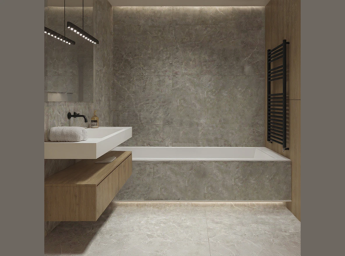 The bedroom, maintained in a refined style, captivates with its elegant beige upholstered headboard and golden sconces on either side of the bed, creating a romantic and cozy atmosphere. The bedside tables with upholstered headboards and slats on either side of the bed add sophistication and harmony to the bedroom, creating the perfect retreat for relaxation and rest after a day full of experiences. The bathrooms, kept in warm brown and beige tones, delight with their elegance and functionality, creating an ideal place for relaxation and rejuvenation after a long day. Honey-colored curtains add coziness and elegance to the bathroom, creating a harmonious atmosphere and ensuring privacy. Sconces with golden elements illuminate every corner of the bathroom, adding brightness and charm, highlighting the unique character of the interior and creating a luxurious ambiance. The apartment project in Warsaw exudes harmony, elegance, and refined style, being the ideal place for those seeking luxury and comfort in the heart of the city. Its unique design and carefully selected details make it a remarkable property, ensuring comfortable and prestigious living in the capital of Poland.