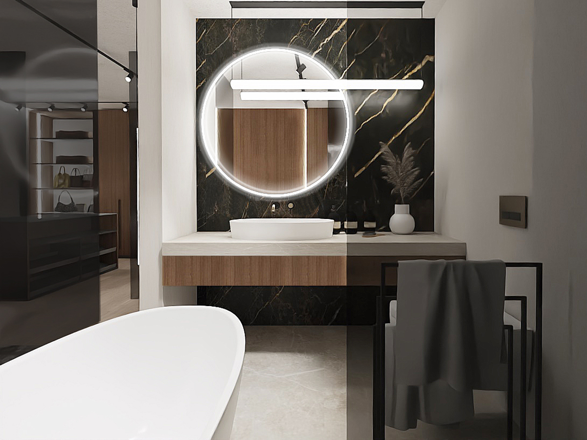 Witajcie w świecie wyrafinowanego designu! Nasz najnowszy projekt wnętrz to kwintesencja elegancji i nowoczesnego stylu. W tym projekcie wnętrz domu jednorodzinnego wiodącymi elementami są wygaszone drewno, biały i czarny marmur oraz szarości, tworzące harmonijną kompozycję o subtelnym uroku. Projekt stanowi połączenie klasyki z nowoczesnym minimalizmem, tworząc przestrzeń, która emanuje spokojem i luksusem. Kolorystyka została dobrane z dbałością o najmniejsze detale, aby stworzyć atmosferę, która zachęca do relaksu i spokoju. Wykorzystując najlepsze materiały i najnowsze trendy w designie, stworzyliśmy przestrzeń, która nie tylko zachwyca swoim wyglądem, ale również jest funkcjonalna i dostosowana do potrzeb nowoczesnego życia. Przekonaj się sam, jak nasz projekt wnętrz może odmienić Twoje życie codzienne, łącząc wyjątkowy design z wygodą użytkowania. Odkryj harmonię i elegancję w każdym detalu – zapraszamy do zapoznania się z naszym najnowszym projektem!