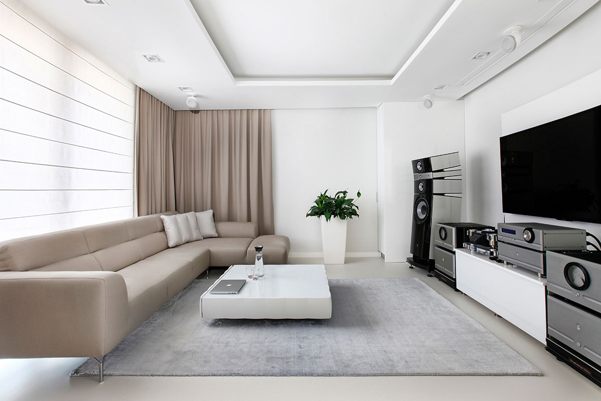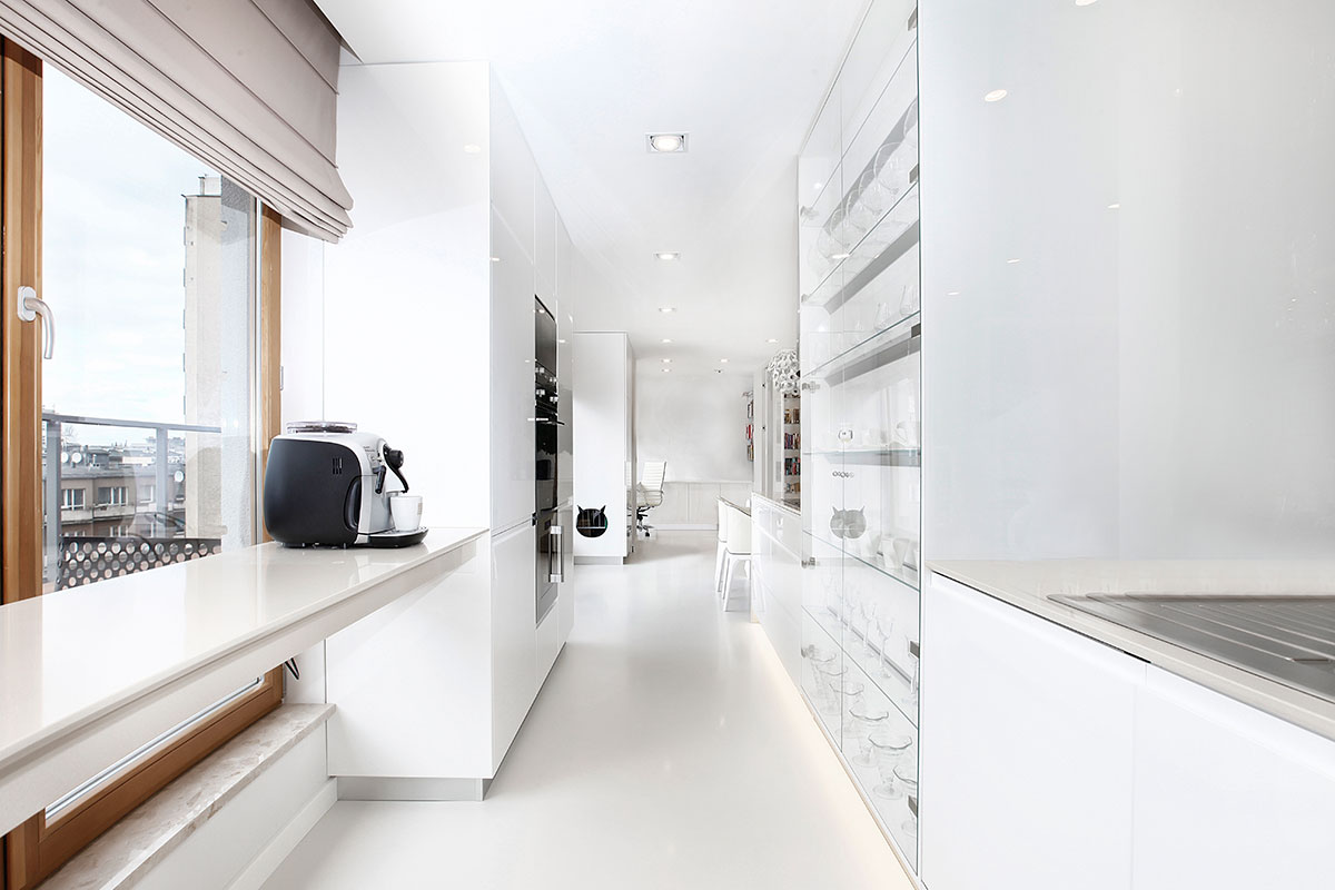 W skład aranżacji wnętrz mieszkania wchodzi ; salon z aneksem kuchennym , gabinet, garderoba , sypialnia oraz łazienka. Wszystkie pomieszczenia bazują na jasnej kolorystyce. Białe ściany oraz zabudowy ocieplone zostały beżowymi dodatkami. Aranżacja salonu dodatkowo została ocieplona poprzez zastosowanie zasłon na ścianach.Zdjęcia z realizacji Magdalena Łojewska.