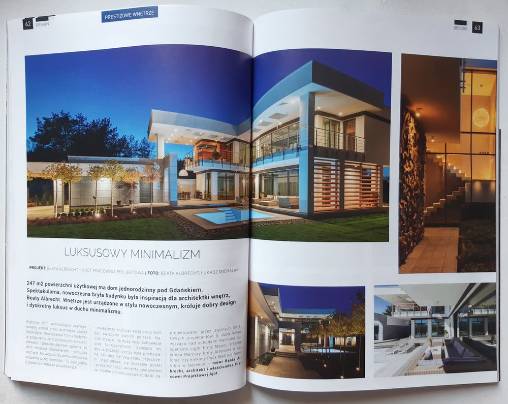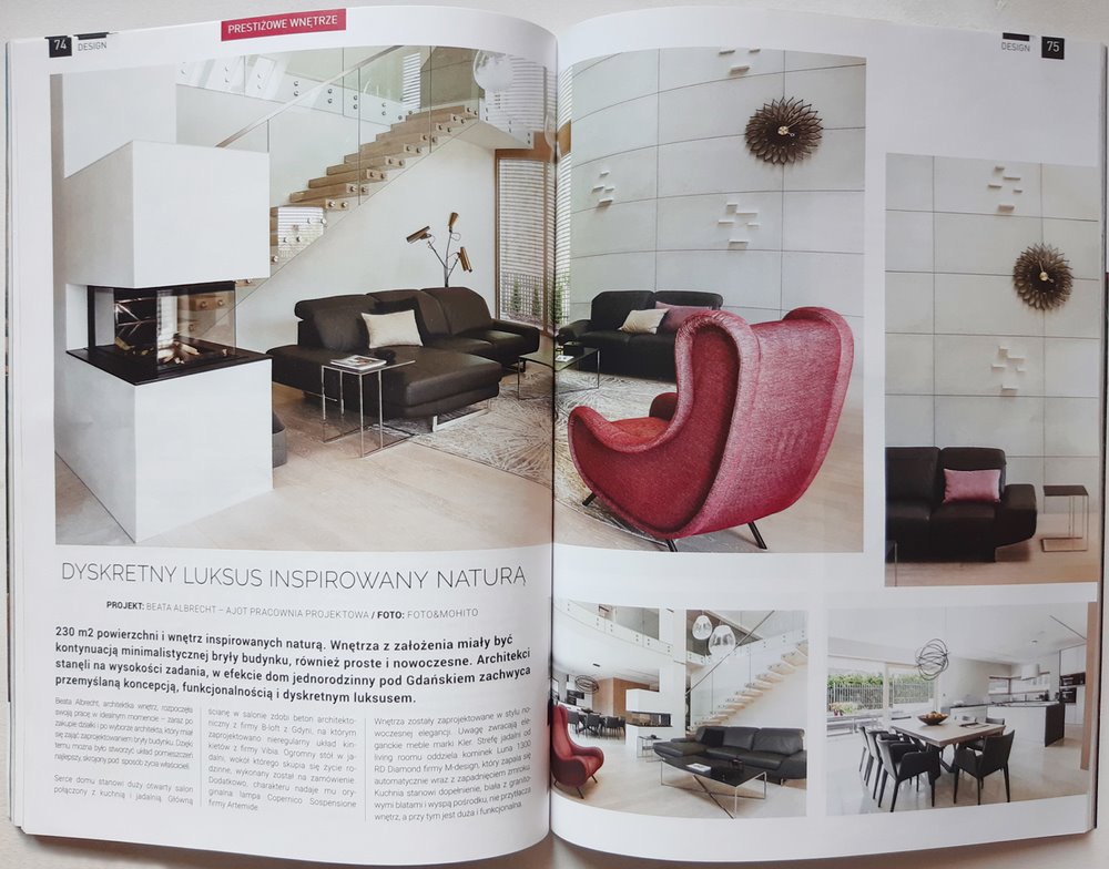 PublikacjePublikacja na stronie Internityhome https://internityhome.pl/inspiracje/nowoczesna-aranzacja-domu-jednorodzinnego-innowacyjnosc-i-odwaga-wnetrza-design-beata-albrecht-ajot/Publikacja projektu na stronie Urządzamy.pl https://www.urzadzamy.pl/wnetrza/klasyczne-mieszkanie-w-gdansku-taki-styl-kochaja-polacy-biele-szarosci-i-braz-aa-bbcc-CYiL-VbAP.htmlPublikacja na łamach portalu Archinea projektu wnętrz domu jednorodzinnego Black & White https://archinea.pl/zawsze-modne-i-aktualne-wnetrza-w-stylu-black-white/Publikacja projektu domu pod Gdańskiem w magazynie Prestiż http://prestiztrojmiasto.pl/magazyn/98Publikacja projektu domu pod Gdańskiem w magazynie Prestiż http://prestiztrojmiasto.pl/magazyn/99Publikacja projektu domu pod Gdańskiem w magazynie Time till POLSKA Publikacja domu jednorodzinnego w Gliwicach https://www.archdaily.com/878297/courtyard-house-inostudio